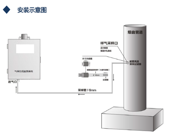 由设备信号采集柜、不锈钢采样管、焊接采样器等组成。将样气进行过滤及水分干燥后,输送到气体控制器进行数据检测和分析。